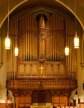 The original organ located in the rear balcony was built by Henry Erben of New York and was dedicated June 1, 1866. There is no record of the organ built following the December 1867 fire. When the balconies were added in 1895 a three manual Woodberry tracker-action organ was installed at the front of the Sanctuary over the baptistery.