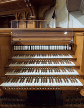 The main organ consisted of five divisions at the front of the Sanctuary and a three mania; antiphonal. The organ was to be played through lines leased from the telephone company to the Woodward & Lothrop department store. Moller added a pipe display in the store with speakers behind them.